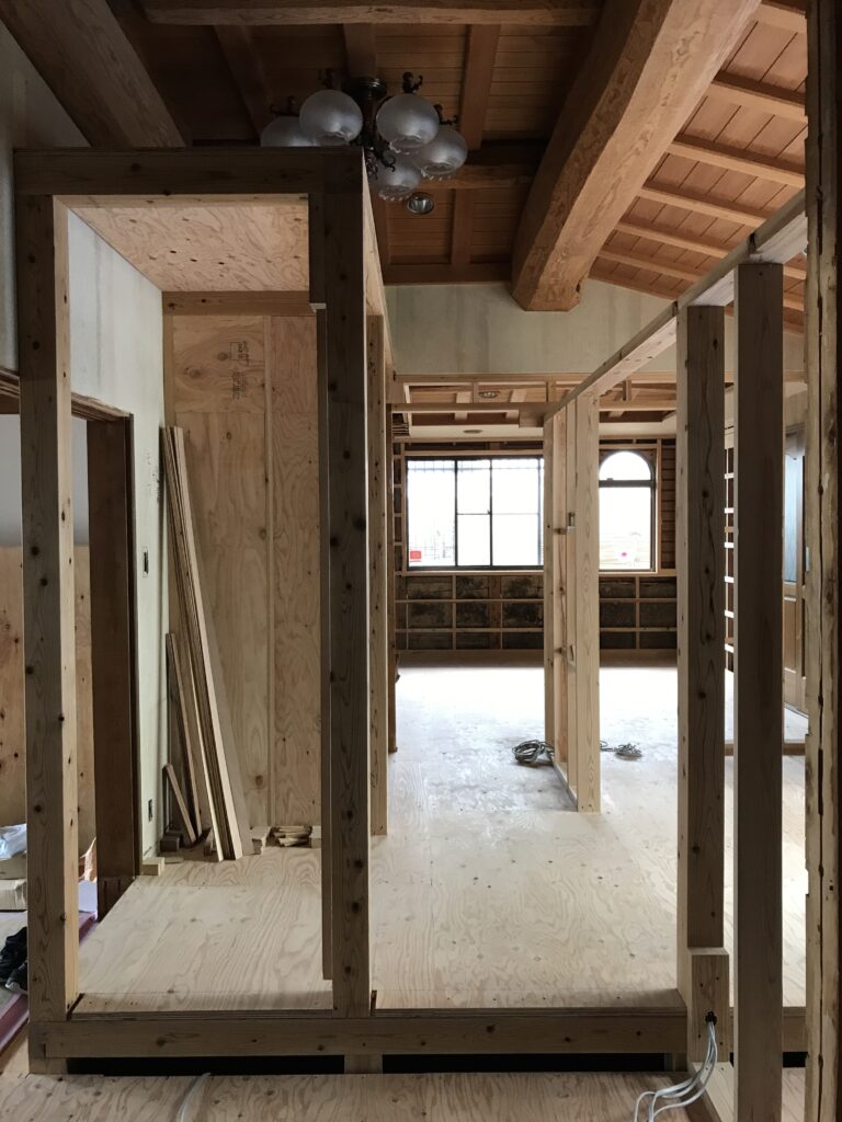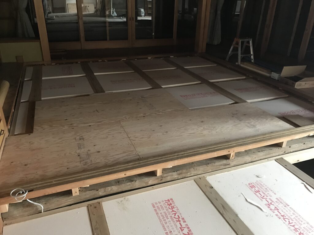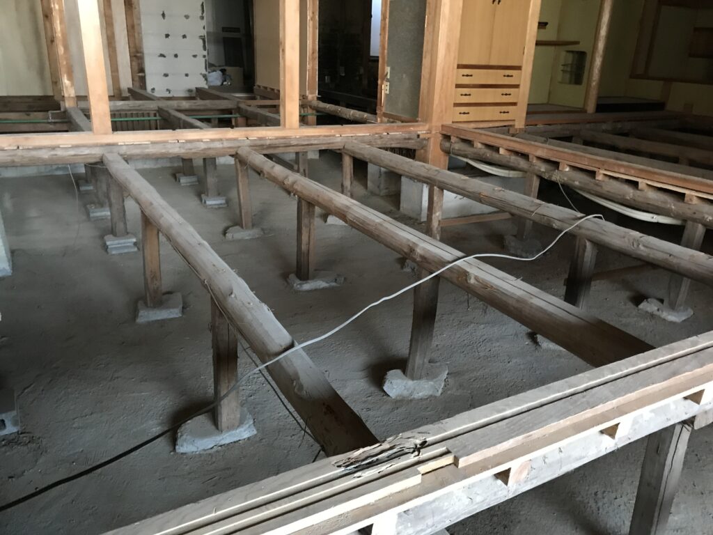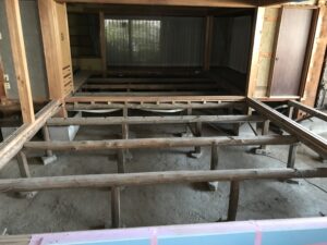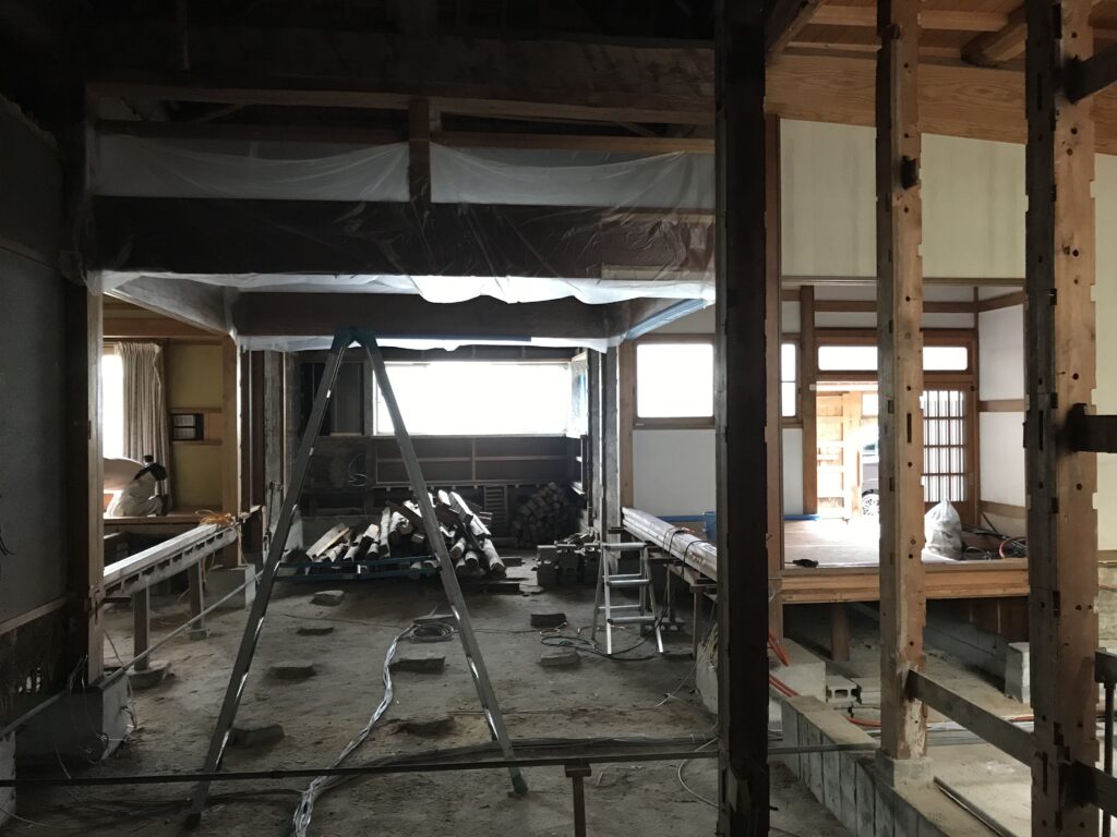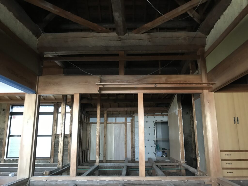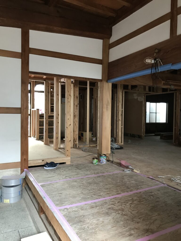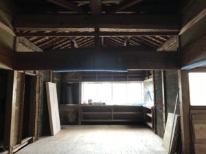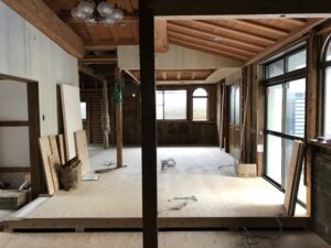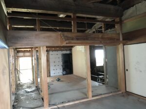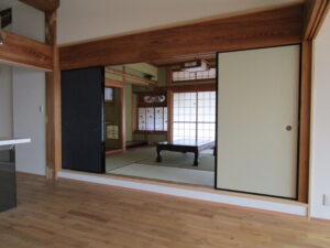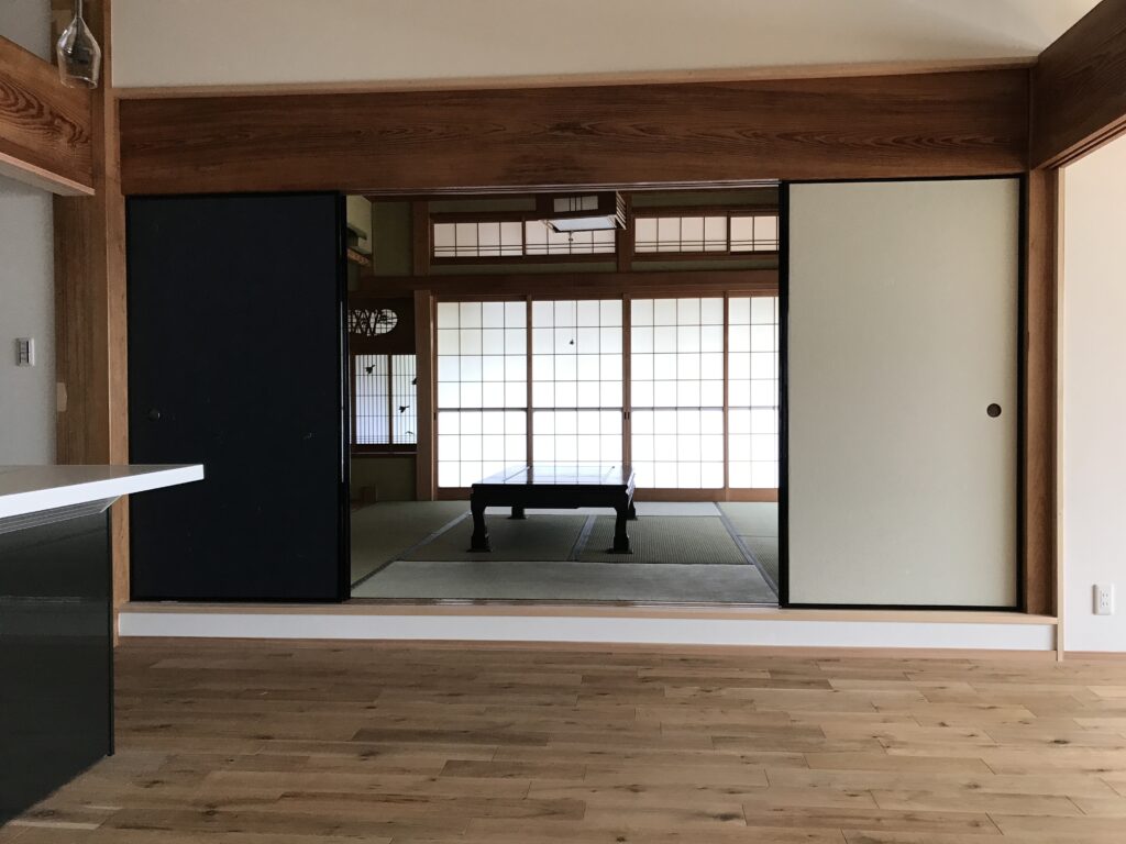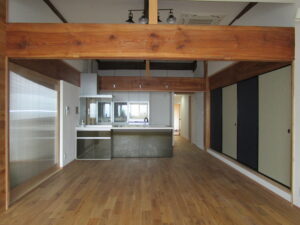 大阪南部に建つ平屋住宅、室内のバリアフリー、LDK及び水廻りの全面改修工事。